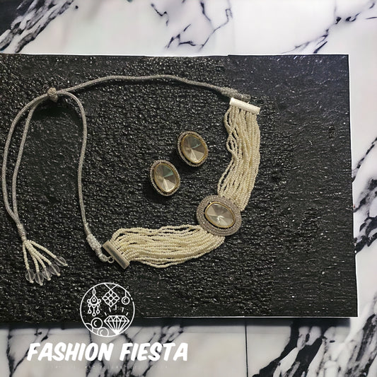 Elegant Simplicity: Gold and White Bead Maala Necklace Set