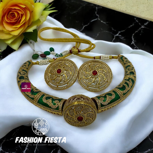 Regal Splendor: Rajasthani Rajwari Hasli Necklace Set
